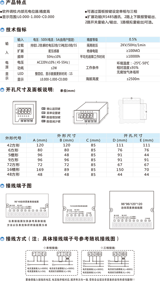 单相/三相功率因素表